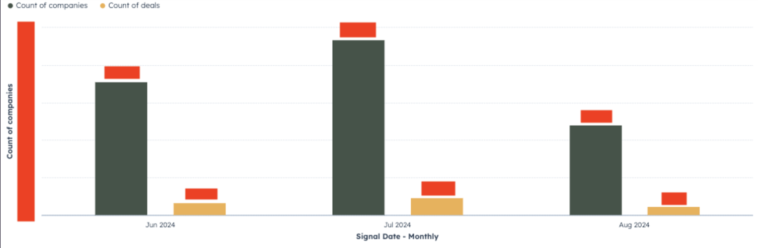 Ultimately, the goal of these reports is to understand how to maintain consistent, impactful engagement that influences your pipeline in the long term. By tracking signal-based activity in this way, you'll be able to pinpoint the ideal level of engagement and impressions needed for each account or segment to drive measurable results.