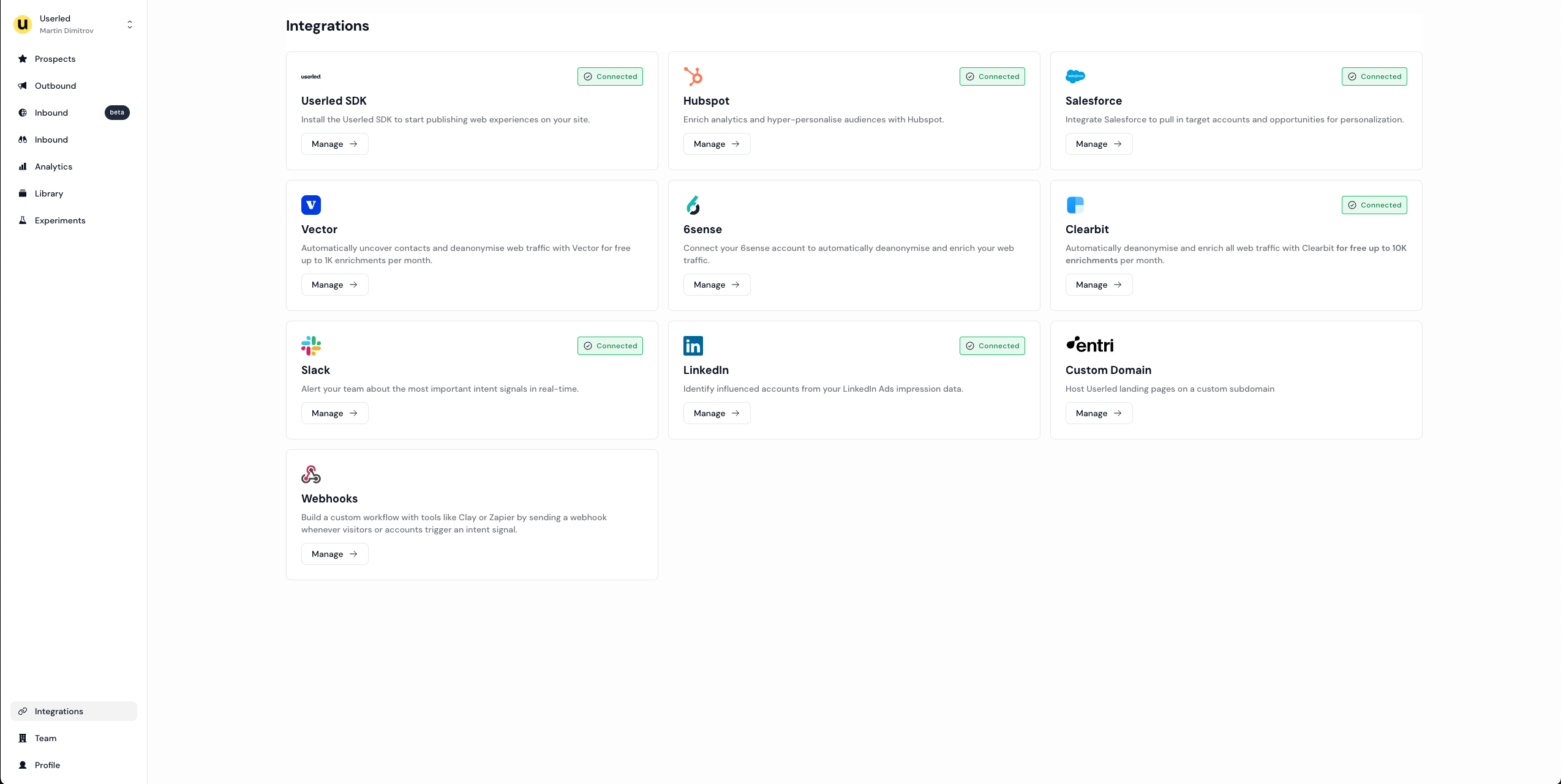 The Vector integration comes out of the box as part of Userled's partnership with Vector for organisations with Vector enabled as part of their paid tier.
