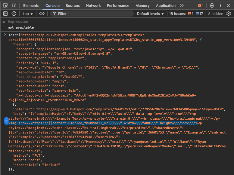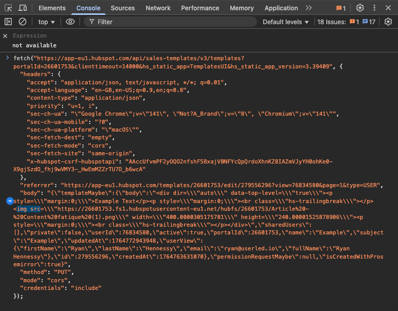 Now, go to the Console tab in the same developer tool, and paste what you just copied in. Look for img src in the text. This helps you find the image element you’ll want to update.