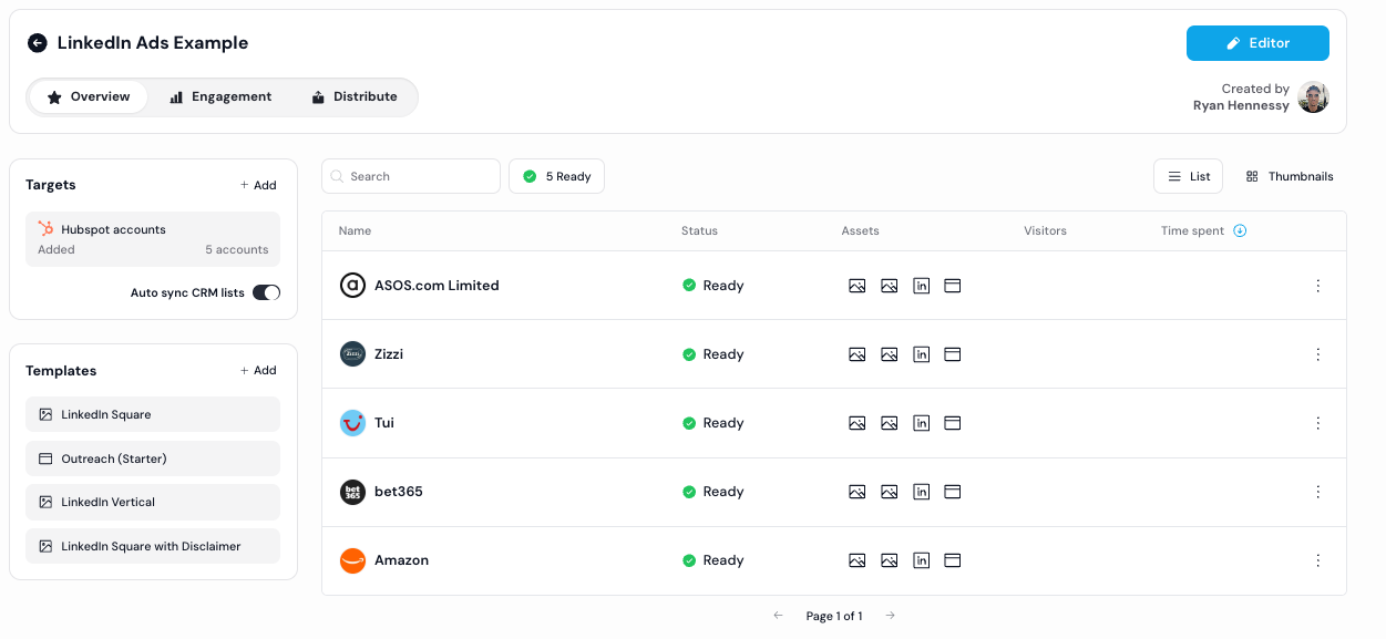 Here you can make any edits and overrides if needed in the campaign editor. Once you’re ready to generate the assets, select ‘Publish’.