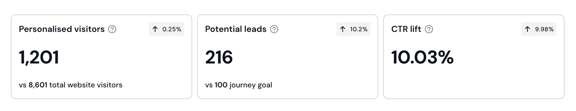 Personalised visitors vs total website visitors: the number of visitors who has seen at least one experience in the published journey