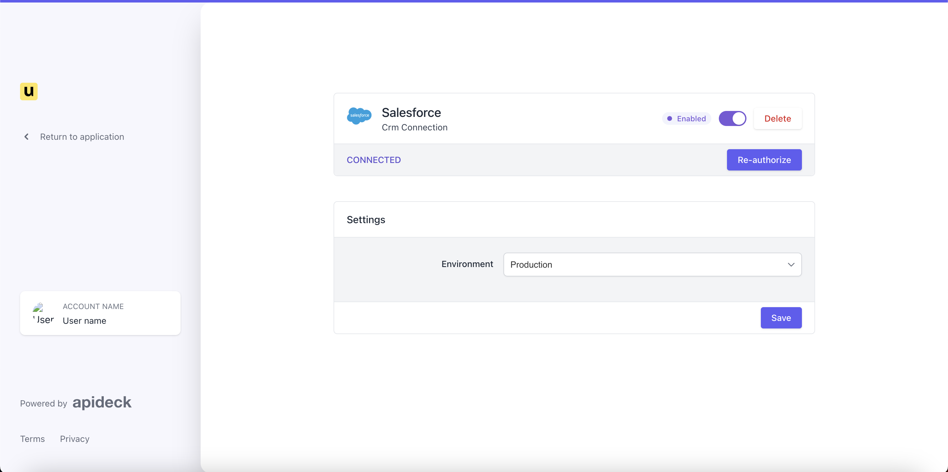6. Navigate back to your Salesforce integration settings to validate it’s connected properly. You should see a “
