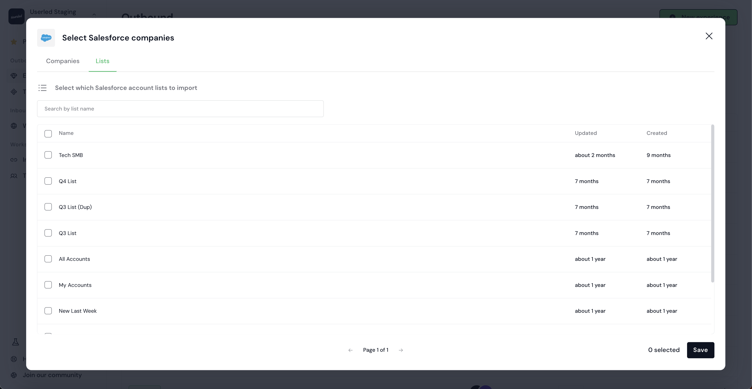 Userled sync with your native Salesforce static and dynamic lists. You can search and select one or more lists. The accounts in those lists will then be selected as your target account list for your experience.