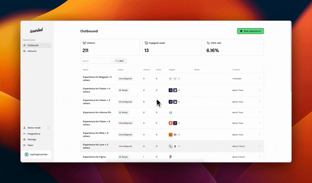 You can easily select target accounts from Userled's company database. Simply enter the company name you want to target in the search bar (and you can select multiple), and start generating beautiful experiences!