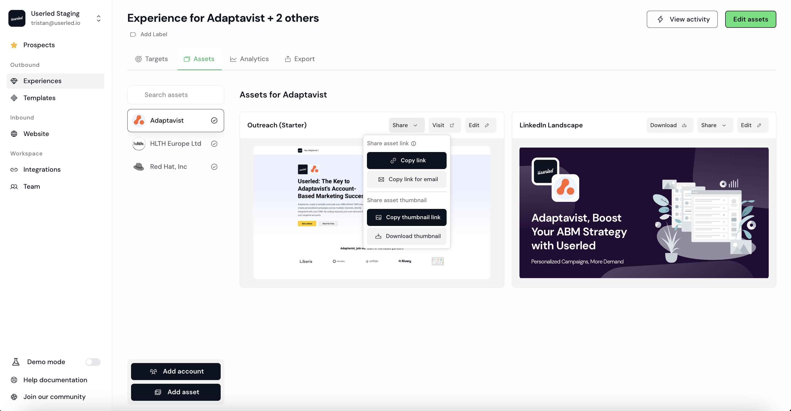 This is an easy export option to quickly using an asset for your 1:1 outreach. It's perfect for email and LinkedIn outreach with your champion!