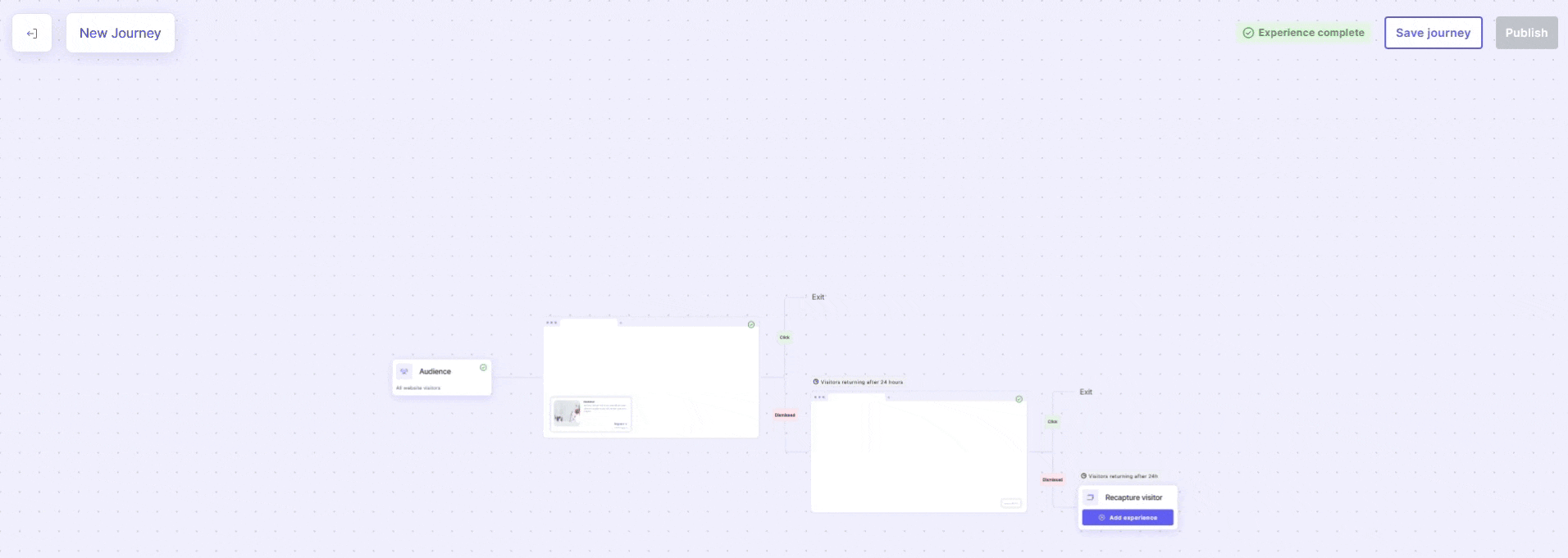 Once all the edits are done, a ✅ Experience complete label will appear on the navbar, indicating that your are ready to publish the journey!