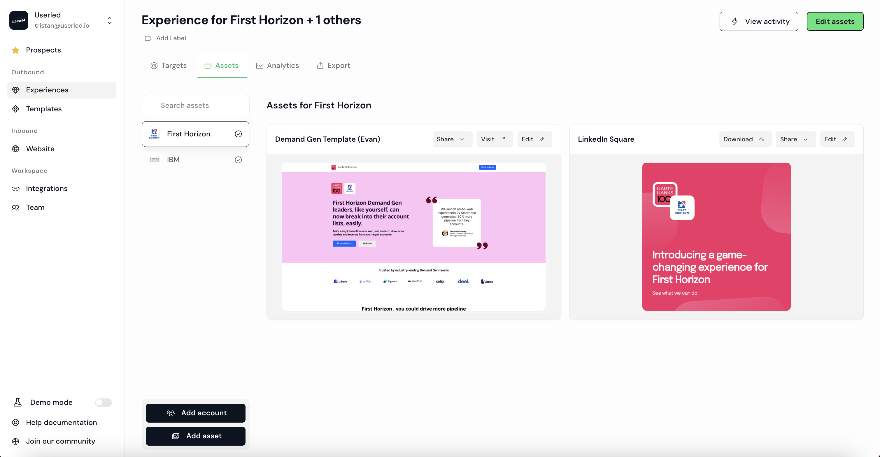 If you are targeting multiple accounts or contacts, and would like to export in bulk, you can export all your assets from the Export tab.