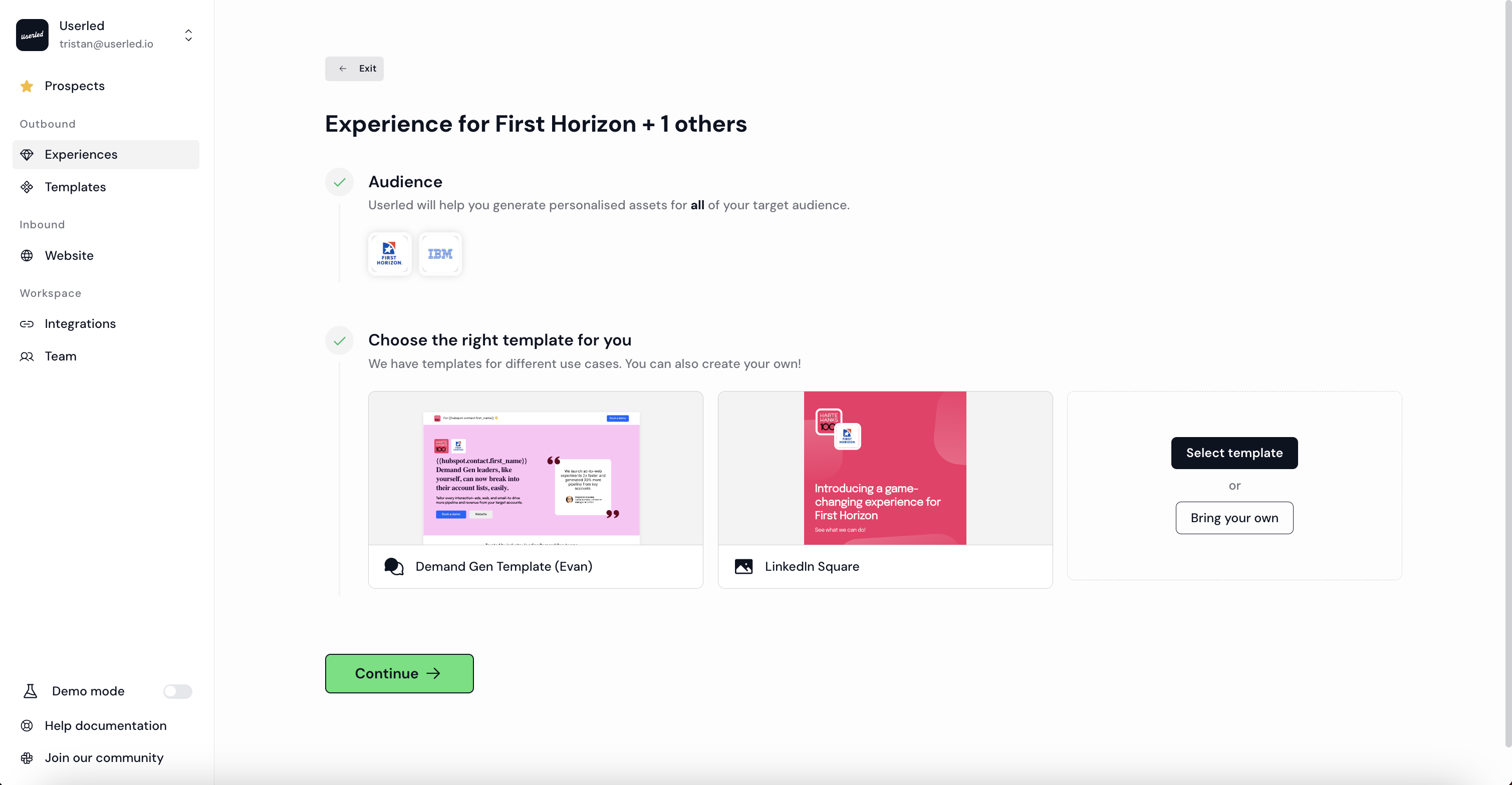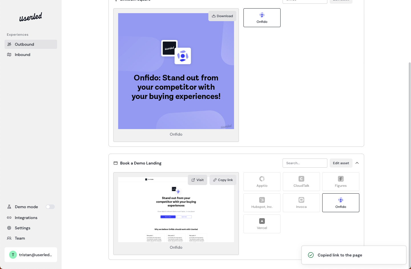 Copy the landing page URL from the Userled app and paste it into the “Destination URL” input