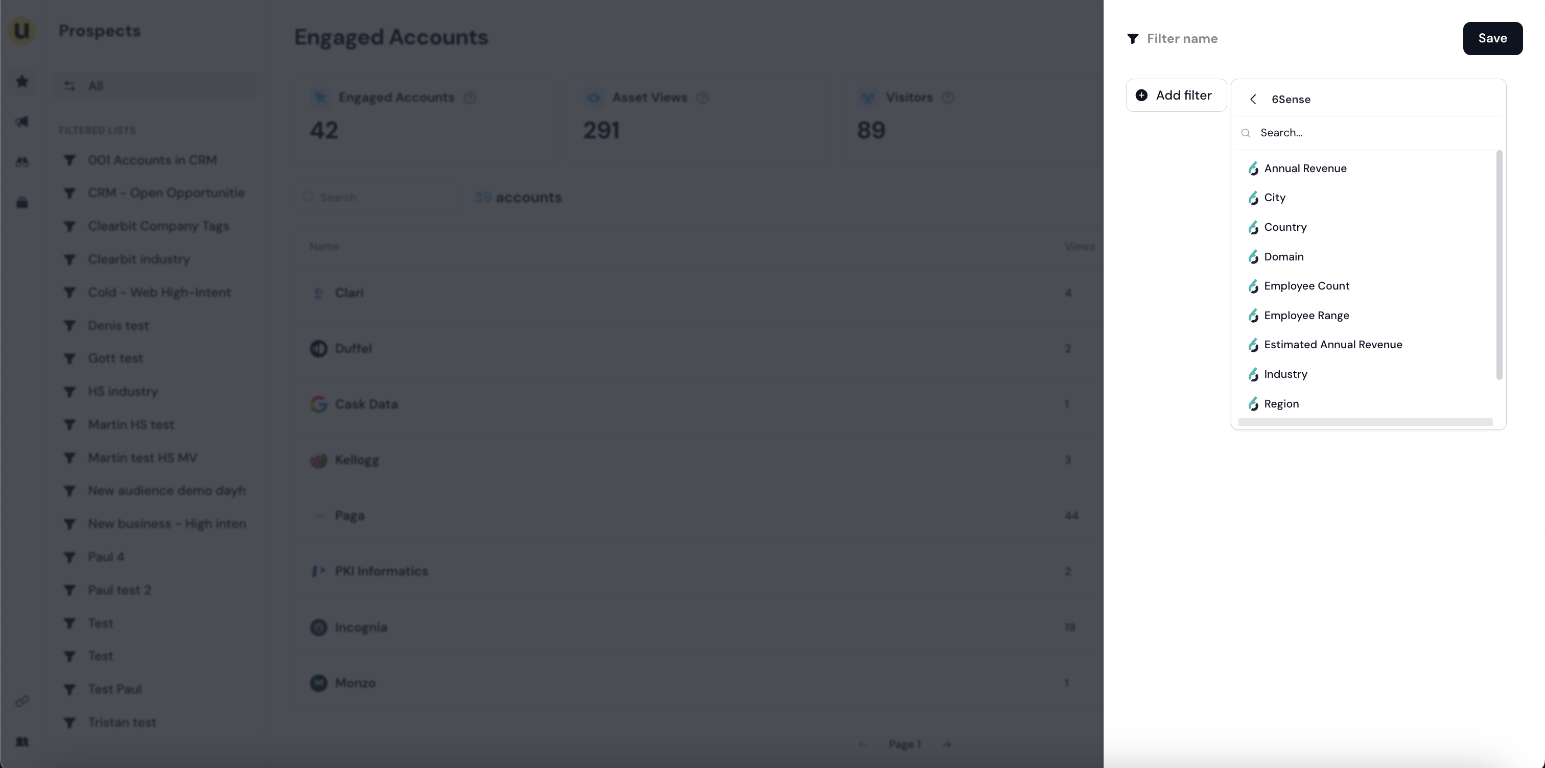 You can create and save lists of accounts based on industry, company size, location, and more, and notify your sales reps in real time when key account reach engagement thresholds that are relevant to them.