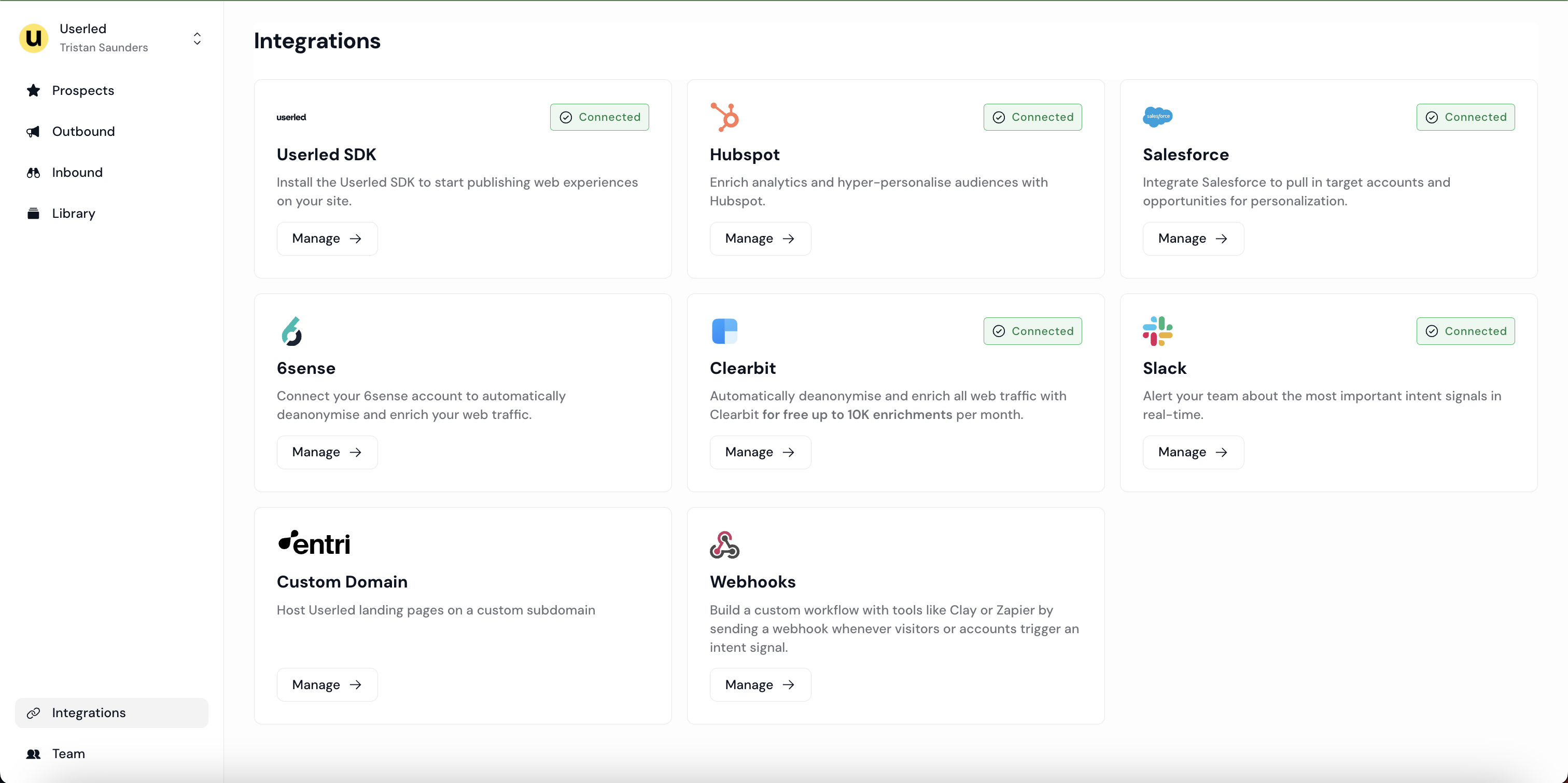 The 6Sense integration comes out of the box as part of Userled's partnership with 6Sense for organisations with 6Sense enabled as part of their paid tier.