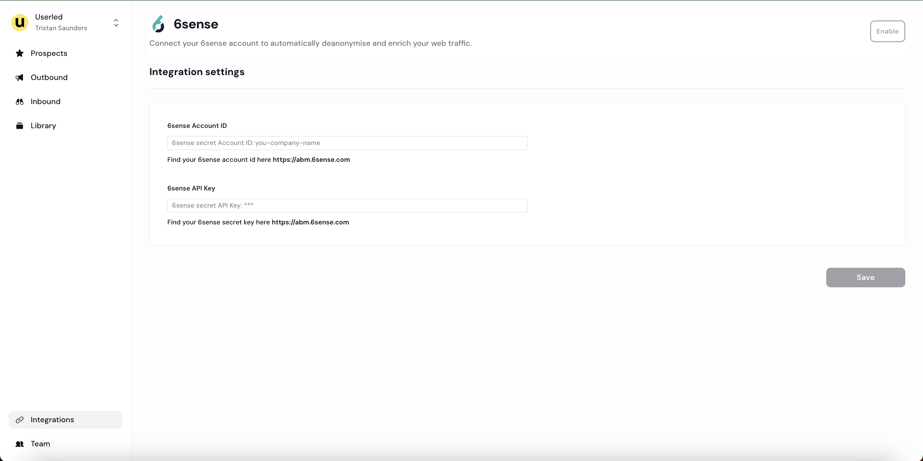 💡 Note: 6Sense integration is available as part of our Paid plans. If you are considering Userled’s paid offering please reach out to us on support@userled.io.