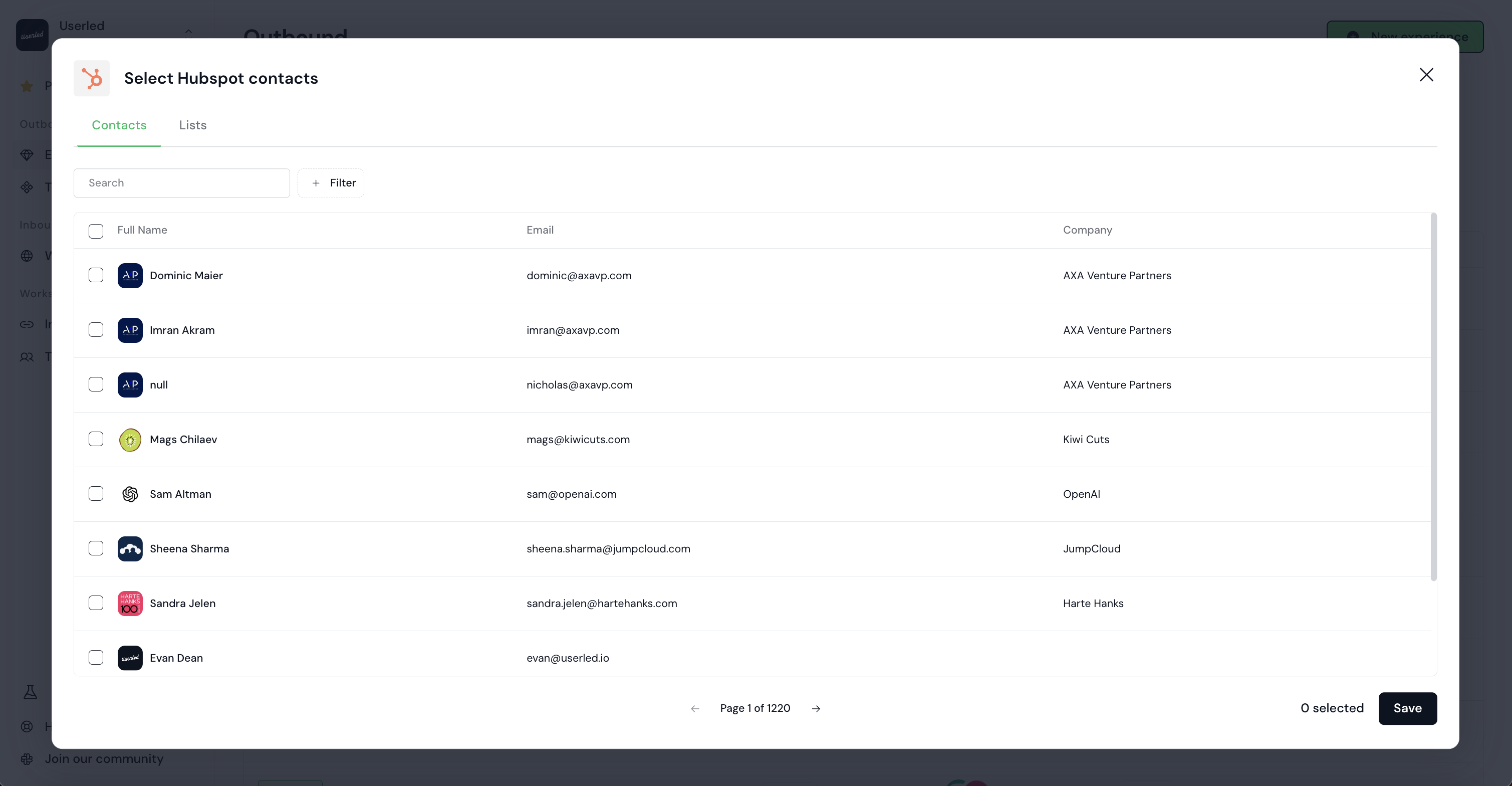 Prerequisite: Connect your Hubspot CRM to Userled from the Hubspot integration page.
