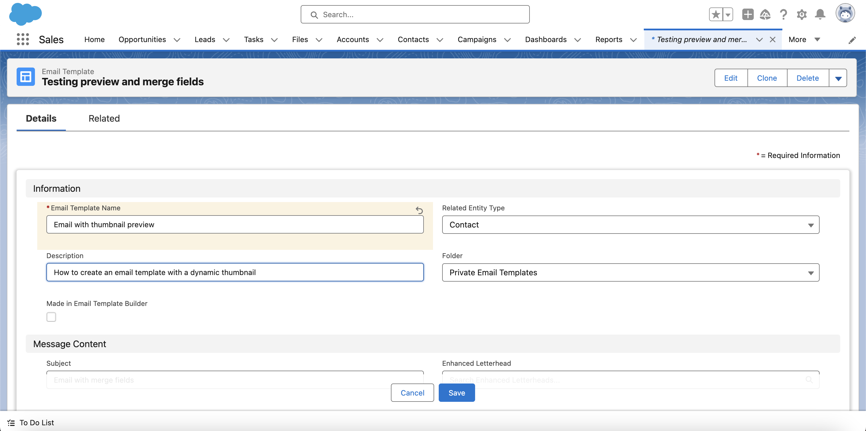 Tip: We recommend you get the support of a Salesforce admin to help you setup your personalised email templates.