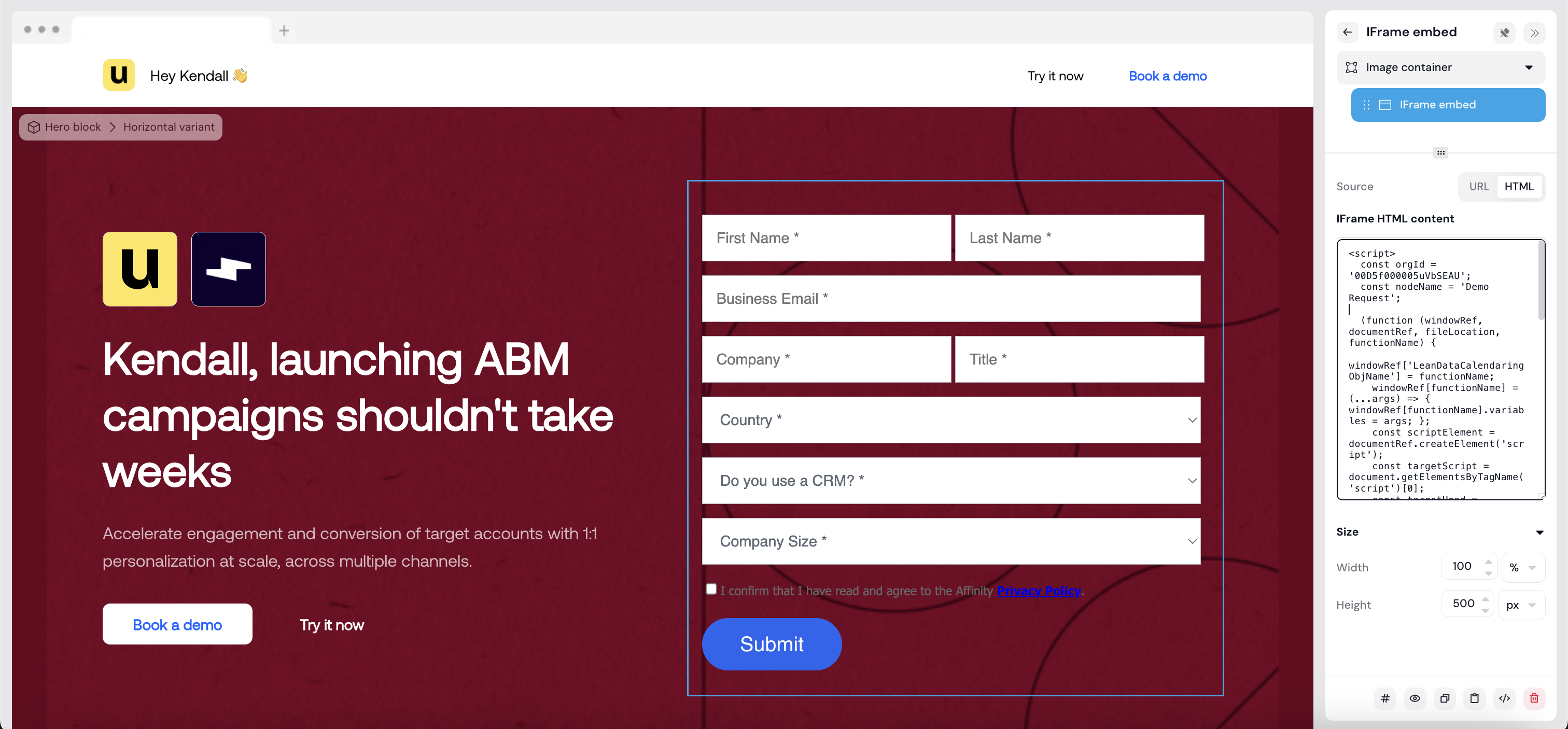 An IFrame is a powerful way to embed content into your experiences whether it be entire websites, video, documents or custom components by inserting custom code. If you need to embed a content accessible via a public URL, you can refer to our guide to embed an iframe in your experience.